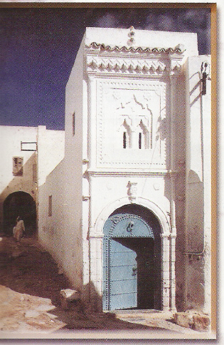 בצד שמאל : מבט על בתים הלבנים של אזימור - השפעה מגורשי ספרד מורגשת היטב ברכיטקטורה תמונה מספרו של יעקב אלפסי ובאדיבות משפחת פורטוגלי , חיפה - התמונה בצד ימין : שער העיירה שימש לא רק לכניסה ויציאה , אלא גם להעברת מסרים של הממשל - בערים המלכותיות שיפדו מעל השערים הראשיים את ראשי הפושעים ואויבי השלטון . בתמונה , נציגי הקהילה היהודית באזימור במהלך סיור משותף . מספרו של יעקב אלפסי (מאוסף משפחת אבישעיד אשדוד ,