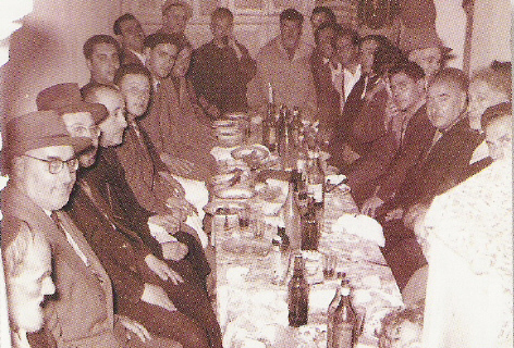 יהודי הקהילה ונציגי השלטון , במסיבת יום הולדתו שלמלך מרוקו מוחמד החמישי , שהתקיימה בבניין ר' אברהם מול-אנס זצ"ל - מספרו של יעקב אלפסי ( מאוסף משפחת אבישעיד , אשדוד )