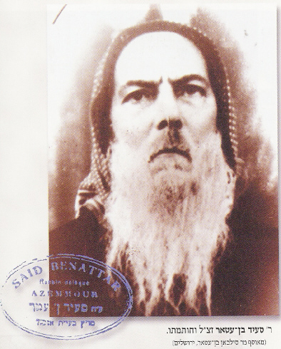 התמונה בצד שמאל : רבי סעיד בן-עטאר זצ"ל וחותמתו מאזימור -